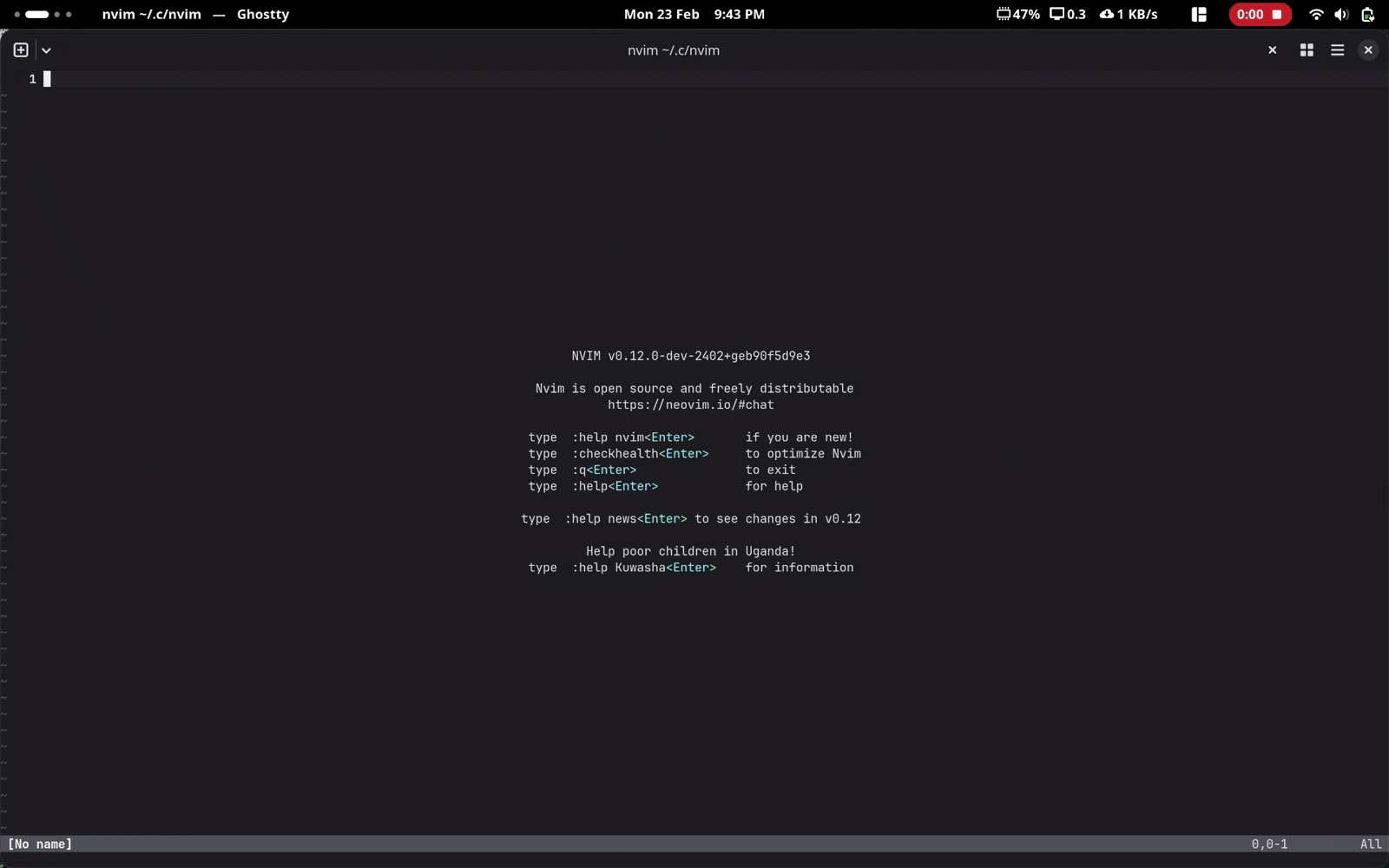 vim.api.nvim_echo({{msg}}, false, { id = "lsp", kind = "progress", title = value.title, status = value.kind ~= "end" and "running" or "success", percent = value.percentage, }) end,})Ghostty has a native GUI for showing progress bars
